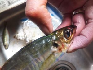 サビキ釣りに外道はつきもの。まぁ万能エサの代表選手であるアミエビを海中にまき散らすわけですから、本命のアジ様以外にも様々な魚類がコレに引き寄せられてやってきます。