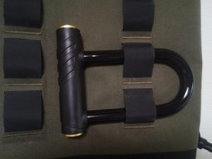 U字ロックをこんな風に取り付けることができます。個人的にはこのリュックを高く評価するポイントのひとつになっています。
