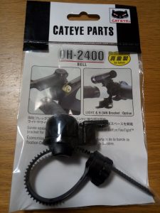 先日購入した同じくキャットアイ製のヘッドライトを取り付けているバンド(フレックスタイトブラケットという)を利用してベルを装着できるから。