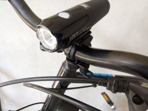 ブラケットをヘッドライトと共用することにより、ハンドル回りがとてもスッキリします。