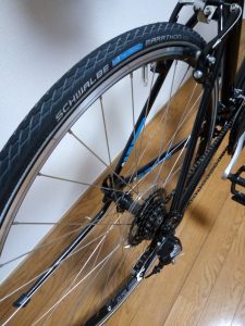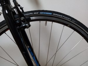 いよいよ新しいタイヤとチューブを装着します。ワタシのトレック(TREK)FX1は自転車通勤がメインの用途なので、耐パンク性能に特化したシュワルベのマラソン(28C)をチョイスしました。