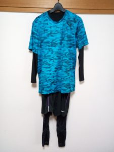 ほぼランニングウェアの流用です。ワタシ、実は、7年ほど前にランニングに目覚めた時期がありまして、そのときにウェアを一式購入しておりました。