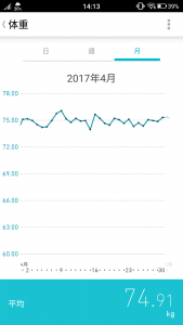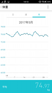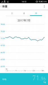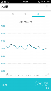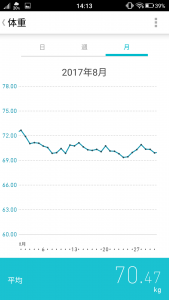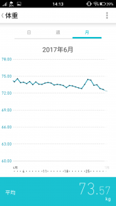 1日、1週間など短期的には上昇と下落を繰り返しつつ、長期的には減少に向かっていくという感じで、結果として月平均5.5kgの減量に成功しました。
