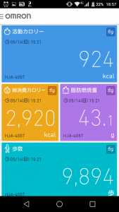 すでに購入していたオムロンの体重計と同様、Bluetooth通信によりアプリ「オムロンコネクト(OMRON connect)」で記録を蓄積・管理できることが、カロリスキャンHJA-405T購入の決め手となりました。