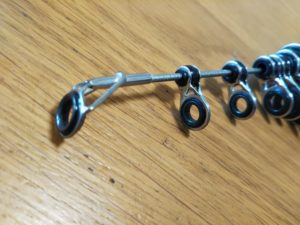 また、トップガイド以外のガイドが破損した場合も注意が必要です。トップガイド以外は、写真のように糸みたいなモノでガイドをロッドに巻き付けて固定します。