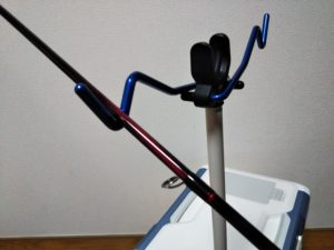 これのポイントは、ロッドを斜めに立て掛ける点にあります。仕掛けが長くなりがちなサビキ釣りでは圧倒的に『斜め立て掛け』の方が利便性が高いと考え、迷わず購入しました。