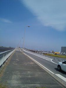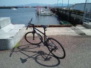 フェリーターミナルまで約20km、1時間5分ほどかかりましたが、初ロングライドによる高揚感もあってか、ノンストップ休憩なしで漕ぎ漕ぎしていました。